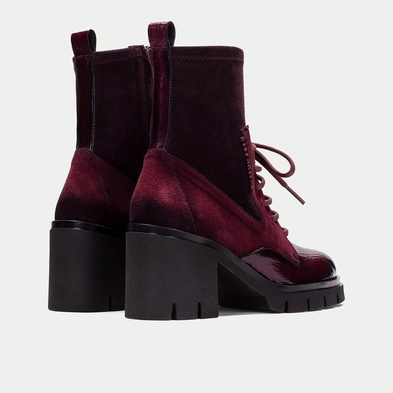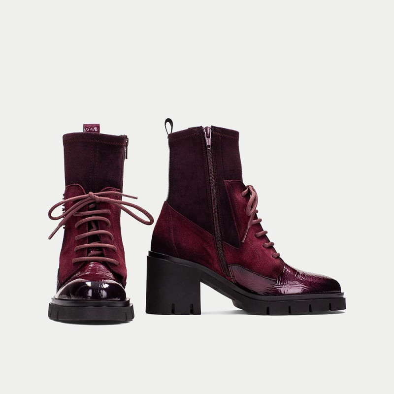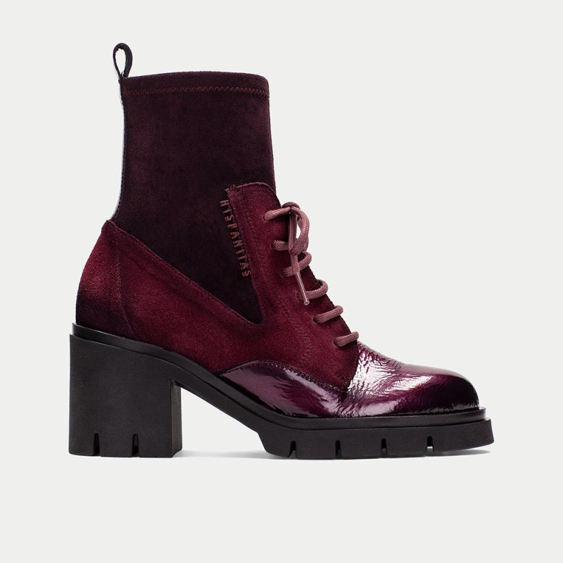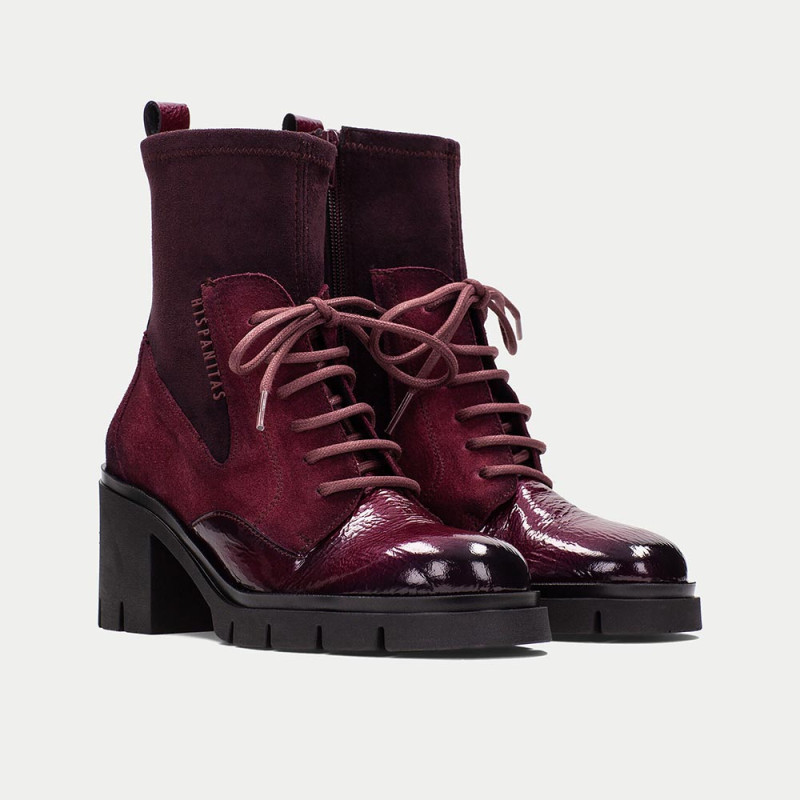 Hispanitas Botín Zurich Mujer Color Vino – Piel y Tejido Elástico